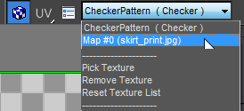 barra de ferramentas superior, abra a lista suspensa de texturas e escolha Map #0 (skirt_print.jpg). (o número de mapa pode variar).