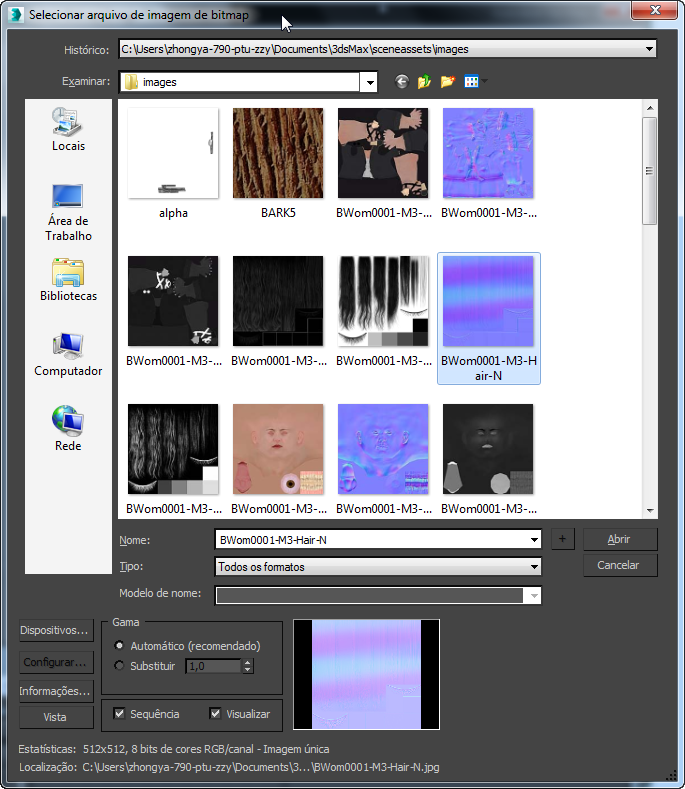 O 3ds Max abrirá uma caixa de diálogo Selecionar arquivo de imagem bitmap.