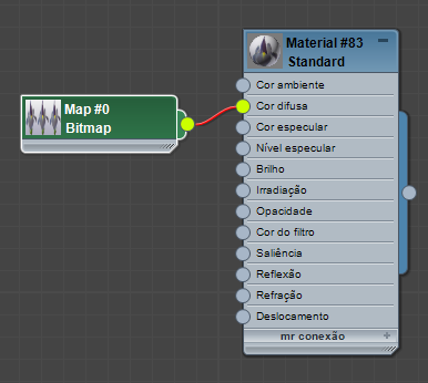 O 3ds Max adicionará um nó Bitmap ao componente Cor difusa do material.