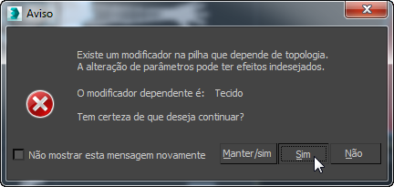 Se o 3ds Max exibir a advertência de topologia novamente, clique em Sim para ignorá-la novamente.