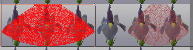 Em Modo de forma livre, a seleção de subobjeto é cercada por uma caixa. Arrastar o centro da caixa move a seleção, arrastar uma alça na metade de uma lateral a rotaciona e arrastar uma alça em um canto dimensiona a seleção em relação à textura que você está mapeando. Observe o cursor para ver qual transformação está ativa.