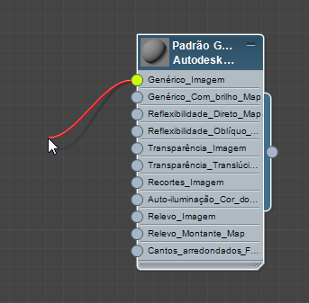 - Arraste um material Genérico da Autodesk do painel Navegador de mapas/materiais à esquerda para a vista ativa no centro do Editor de material slate. (Genérico da Autodesk está no