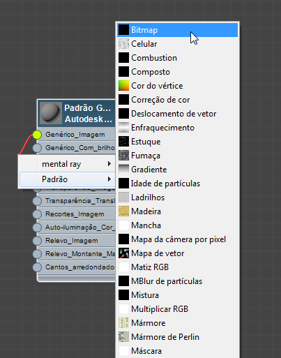 grupo mental ray Materiais). O 3ds Max exibe um nó para o material genérico na vista ativa.