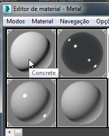 - Nas ranhuras de amostra, localize o material Concreto. Clique na ranhura para tornar o material ativo e, em seguida, clique em