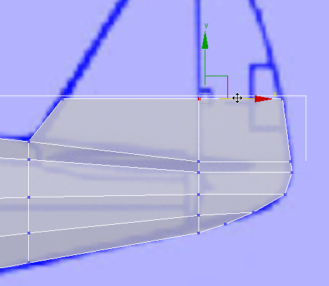 Faça a extrusão dessas faces para cima até a primeira dobradiça do leme.