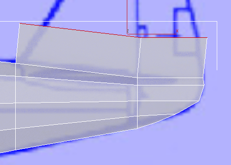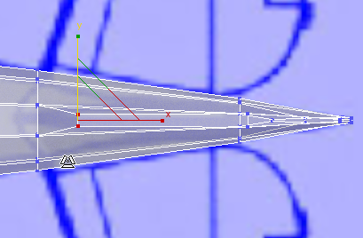 Na Viewport frontal, clique para selecionar uma das bordas horizontais na parte frontal e fixa da cauda.