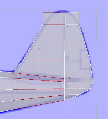 Faça a extrusão das faces no topo da cauda até o topo da dobradiça superior do leme.