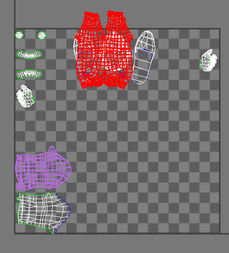 Com os clusters descascados e ajustados dessa forma, você pode criar uma textura compatível com o layout do cluster, com um aplicativo de processamento de imagem como o Photoshop, ou a ferramenta Viewport Canvas do 3ds Max, que permite pintar interativamente na geometria.