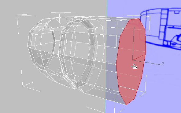 (Extrusão) uma vez mais. Trabalhando na viewport em perspectiva, mas olhando na viewport frontal, faça a extrusão da fuselagem até a junção na parte traseira do cockpit.