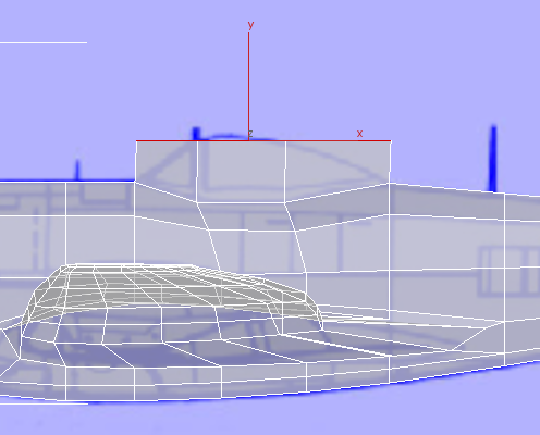 - Repita a etapa anterior para as outras três linhas que definem a área da cabine. Use o viewport frontal para selecionar os vértices por região e, em seguida, utilize o viewport superior para ver como são dimensionados.