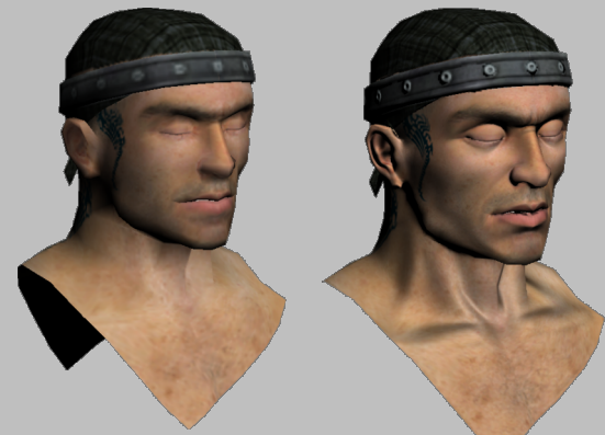 Modelo de um guerreiro somente com mapa difuso (esquerda) e com um mapa normal aplicado (direita)