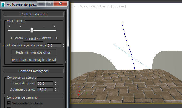 - Na implementação de controles avançados, no grupo Controles de caminho, desative a opção Seguir um caminho. Você não precisa, já que você controlará a rotação da cabeça manualmente.