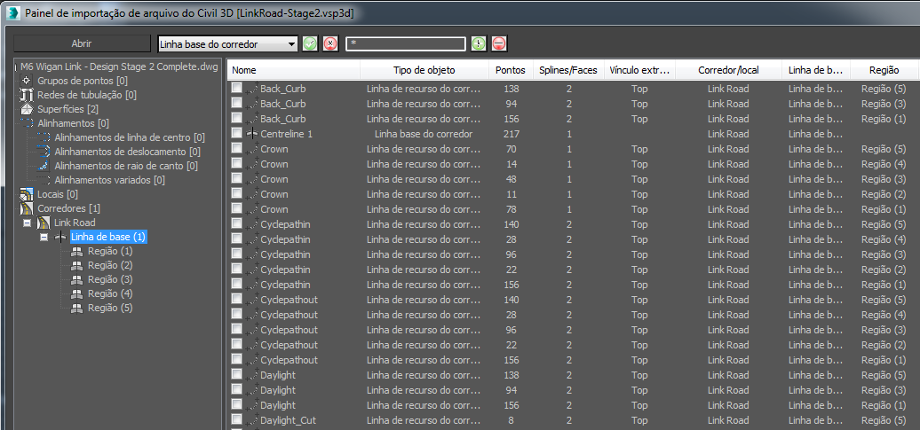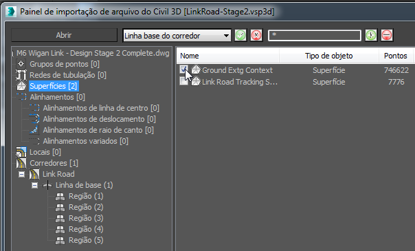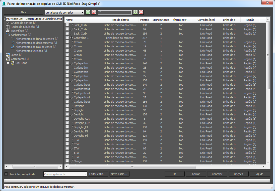 Importar os dados do Civil 3D: