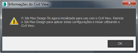 Uma caixa de diálogo avisa que você precisa reiniciar o 3ds Max para que essas alterações sejam concluídas.