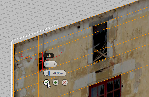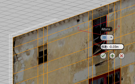 - Arraste as setas no controle Altura, e defina a extrusão da janela para aproximadamente – 0.05 m.