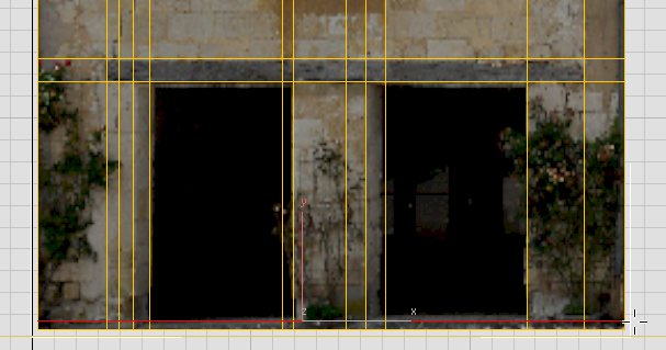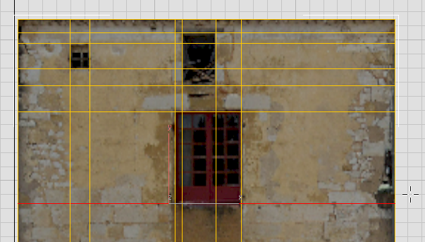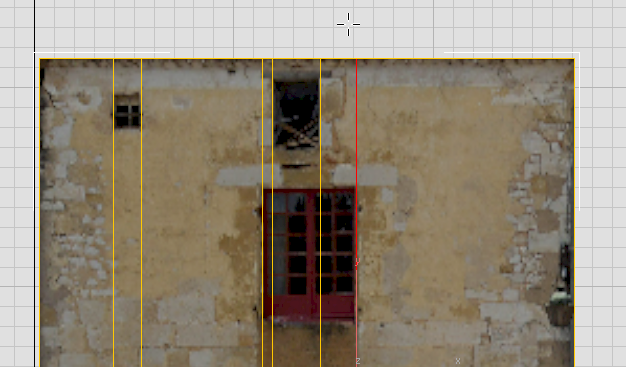 - Arraste sobre a fachada próxima à borda superior. O 3ds Max constrói uma borda vertical, que pode ser movida.