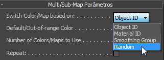 - Clique duas vezes no nó do mapa Múltiplo/Submapa que contém os bitmaps de sujeira, de maneira a que seja possível ver seus parâmetros. Na implementação Parâmetros do Mapa Múltiplo/Submapa, abra a lista suspensa Mudar Cor/Mapa com Base Em e escolha Aleatório.
