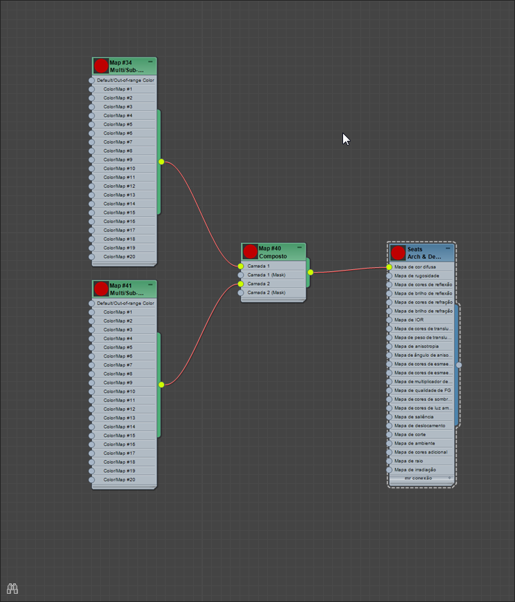 (Extensões do Zoom) para que seja possível ver o nó de material e o nó do mapa Múltiplo/Submapa.