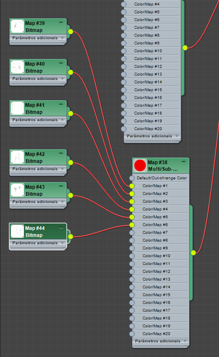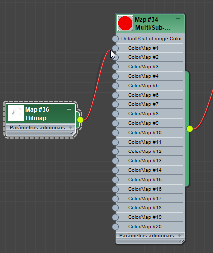- Conecte o novo nó Bitmap ao componente da Cor/Mapa número 1 do novo mapa Múltiplo/Submapa.
