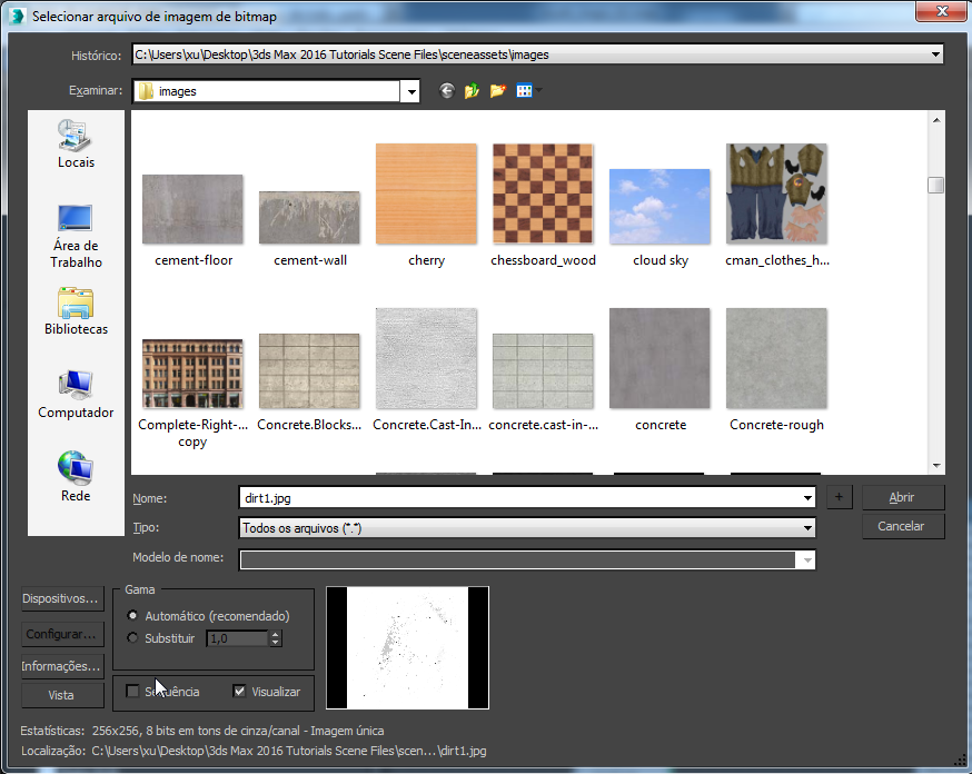 A miniatura na parte inferior direita da caixa de diálogo fornece uma ideia do aspecto da imagem dirt1.jpg.