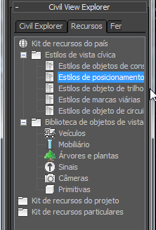 No Civil View Explorer, clique para exibir a guia Recursos.