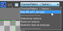 - Abra a lista suspensa à direita da caixa de diálogo Editar UVWs, e escolha a entrada Mapa #8 (p47_tex.jpg)(o número de mapa pode variar).