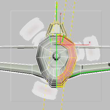(Mapa do plano) uma segunda vez para desativá-lo. Gire as faces 90 graus (para a esquerda) e, em seguida, dimensione e mova as faces para fiquem dentro da área amarela e cinza abaixo das faces da entrada de ar.