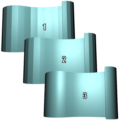 A suavização elimina as facetas na geometria ao agrupar as faces em grupos de suavização. No tempo de renderização, as faces do mesmo grupo de suavização aparecem como uma superfície suave.