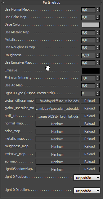 Implementação de parâmetros para a predefinição padrão do sombreador StingRay