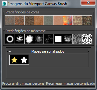 A caixa de diálogo Imagens de pincel da viewport canvas permite escolher uma imagem e máscara para pintar com o recurso Imagem de pincel.