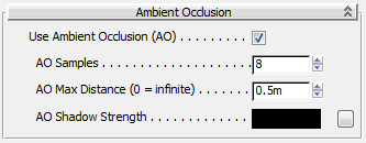 A escuridão das sombras que a oclusão de ambiente causa. O valor padrão é preto, mas você pode causar um efeito de sombreamento menos acentuado usando uma cor mais clara.