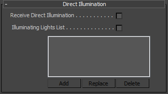 Quando ativado, você pode utilizar os botões Adicionar/Substituir/Excluir para editar a lista, especificando luzes para iluminar a superfície. Para a lista de luzes ser efetiva, Receber iluminação direta também deve estar ativada.