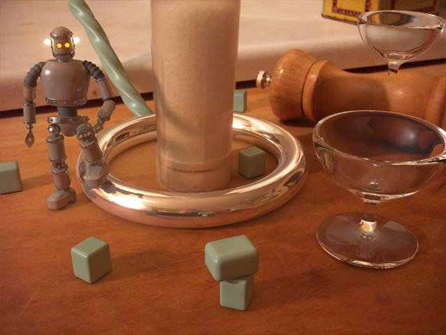 Se você renderizar agora, a imagem resultante ainda corretamente contém todas as reflexões, luz, e assim por diante, do plano de fundo, mas não o plano de fundo. Sombras existe no canal alfa, portanto, a imagem é adequado para composição diretamente no topo da imagem de plano de fundo.