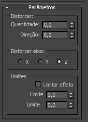 - Nos , defina o eixo de distorção para X, Y ou Z. Isto é o eixo da meta-alça de distorção, não do eixo do objeto selecionado.