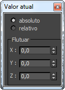 A edição dos valores absoluto e relativo permite incrementar as alterações ou aplicar valores exatos. O nome do controle cujos valores estão sendo alterados é exibido acima das seleções de eixo.