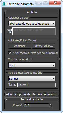 Nota: Se você escolher o Modificador atual do objeto selecionado e se vários modificadores estiverem realçados na pilha quando você clicar em Adicionar, o Editor de parâmetros aplicará o atributo personalizado ao primeiro modificador realçado e removerá o realce dos outros modificadores.
