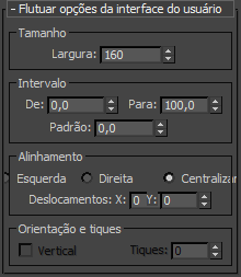 Estas são as opções para um controle deslizante padrão que define um valor de número inteiro ou um valor de número real (ângulo, flutuante, porcentagem, unidades globais).