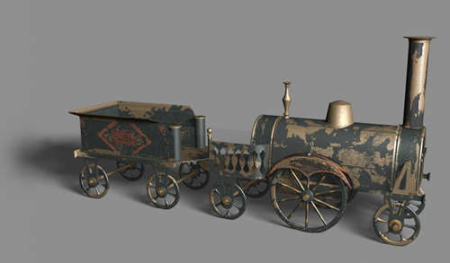 Esta cena faz referência ao trem de brinquedo exibido na ilustração anterior.