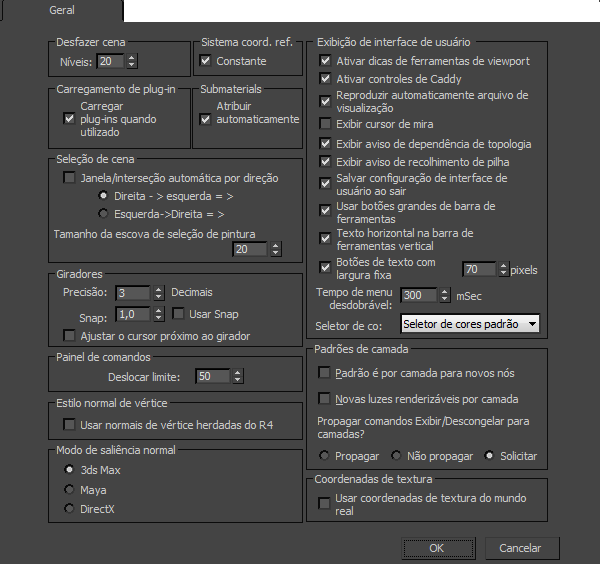 - Modo 3ds Max(O padrão). Escolha esta opção para ter compatibilidade com mapas normais elaborados com a ferramenta Renderizar para textura.