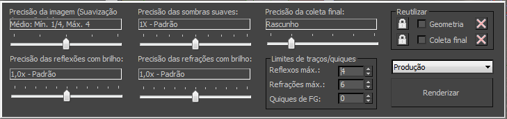 Esses comandos permitem poupar tempo de renderização, reutilizando geometria convertida e soluções de coleta final. Os controles de Coleta final só ficam disponíveis quando a opção Coleta final é ativada.