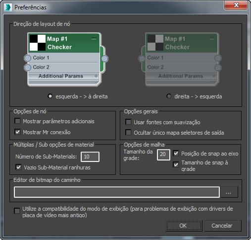 A caixa de diálogo Opções do Editor de material slate permite definir algumas preferências globais relacionadas ao comportamento do editor.