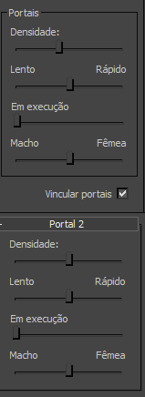 É possível experimentar a variação de outras configurações entre os portais: por exemplo, a Densidade ou a proporção Macho/fêmea.