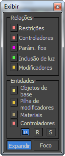 Permite escolher quais das seguintes relações prefere exibir ou criar: restrições, controladores, fiação de parâmetro, inclusão de luz e modificadores.