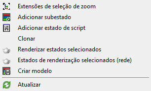 Clicar com o botão direito do mouse na parte superior de um nó de estado seleciona o nó e abre esse menu. Se o nó de estado e outros nós de estado já estiverem selecionados, todos permanecem selecionados, assim qualquer comando que você usar se aplica a todos os nós selecionados.
