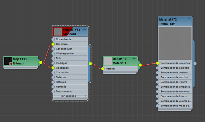 Por exemplo, se você desejar que um componente Superfície do material do mental ray seja semelhante a um material padrão que você tenha, atribua Material para sombreador como o sombreador de Superfície e, em seguida, lhe atribua o material padrão.