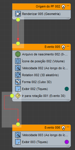 Para associar um teste a um evento, arraste-o da saída de teste, o ponto azul que por padrão fica destacado à esquerda do teste, até à entrada do evento do evento, que fica destacada desde a parte superior, ou vice-versa. Da mesma forma, você pode associar um evento global a um evento de nascimento arrastando entre a saída de origem na parte inferior do evento global e a entrada do evento.