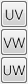 Por padrão, a parte de UV das coordenadas UVW é exibida na janela de visualização. No entanto, é possível alterar a visualização para editar a parte do UW ou a parte do VW.