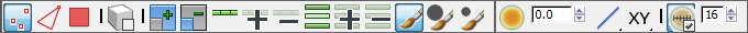 A primeira das duas barras de ferramenta inferiores contém funções para definição do modo do subobjeto, fazendo seleções prodimentais, e usando a seleção suave.