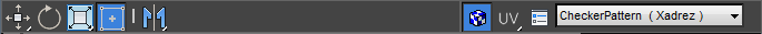 A textura xadrez denominada CheckerPattern (Xadrez), útil para verificar áreas distorcidas do mapeamento de textura, é embutida na caixa de diálogo Editar UVWs. Por padrão, esta textura é exibida como a textura do plano de fundo quando você abre primeiro o editor após aplicar Revelar UVW para um objeto. Para fazer com que o padrão apareça no objeto nas definições das viewports para exibir texturas, selecione a partir da lista suspensa, mesmo se ele já estiver ativo no editor.