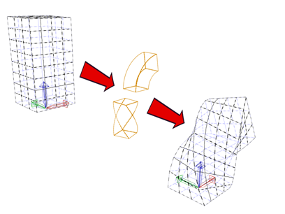 Espaço é abaulada são avaliadas depois de transformações. Eles distorce objetos vinculados ao espaço Distorcer com base na posição do objeto no espaço mundial. Por exemplo, um espaço de onda Distorcer faz com que a superfície de um objeto para os sombreamentos ondulados em forma de onda. Como o objeto ou o espaço Distorcer move através do espaço mundial, as ondas mover através do objeto de superfície.